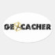 Geocacher with Compass Oval Sticker