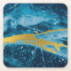 Geode Agate Gemstone Blue and Gold Square Paper Coaster
