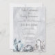 These elegant wedding invitations feature a brushed watercolor grey background. At the base of the cards are grey and blue crystals & geodes. This card has a boho chic vibe with a twist of elegance, perfect to wow your guests. Personalise with names and all of the wedding details.