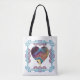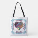 Bright turquoise, blue, purple and creme make a fantastic design on this tote. It will go with just about anything. Design is adapted from painting done by Joy Lomenick. It reminds me of the rocks I used to collect as a kid.