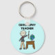 A stick figure geography teacher with a globe on customisable stick figure Geography Teacher T-shirts, mugs, mousepads, tote bags, and more!