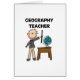 Geography Teacher design Tshirts, mugs, cards, stickers, magnets, hoodies, and more featuring a stick figure teacher and globe.