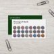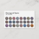 A business card template with an attractive ordered arrangement of circular spots or buttons with a 3d bevel effect, each with an each with a different rock texture (all different). Company details on the front with name and contact details on the back in white on a dark green background. The colours can also be further customised. Suitable for many types of business though particular appropriate for Geology related businesses mining, drilling, etc