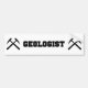 Geologist - in collegiate style lettering between a pair of crossed rock hammer emblems.