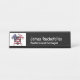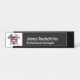 This black nameplate features your name and job title with a classic crossed rock hammer logo decorated with the American flag! Just enter your info in the boxes above. You can even replace the flag with your own logo, if desired.