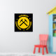 Black and yellow poster with crossed rock hammers emblem surrounded by "GEOLOGIST" in repeating collegiate style lettering.