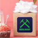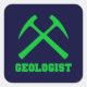 Geologist - dark blue sticker with green collegiate style lettering and crossed rock hammers.