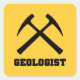 Geologist - yellow and black sticker with crossed rock hammers graphic and collegiate style lettering.