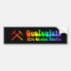 Geologists Are Gneiss People - in rainbow colours with a crossed rock hammers emblem.