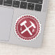 This "bottle cap" style badge features a geologist's favourite rock-bashing implements: a rock hammer and hand sledge! The perfect tools for beating rock samples into submission!