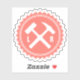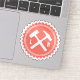 This "bottle cap" style badge features a geologist's favourite rock-bashing implements: a rock hammer and hand sledge! The perfect tools for beating rock samples into submission!