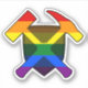 This vinyl decal features the classic crossed rock pick and sledge hammer, decorated with the LGBT rainbow flag! Put this sticker on your laptop!