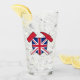 This drink glass features the classic geology rock hammer logo, decorated like the Union Flag of the United Kingdom. Perfect for celebrating a successful day of science!