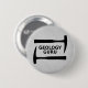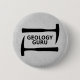 Geology Guru - grey button pin with black lettering and rock hammers.