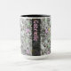 Delicate photo of white Granite rock texture with digitally added pastel dots. The photo covers the major part of this mug. Opposite of the handle, there is a semitransparent vertical name banner. Banner is black, and text is light grey to light brown.
