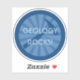 This badge-style vinyl decal features a geologist's rock hammer in dark blue in front of a blue sunburst design. Overlying that is the customisable phrase "Geology Rocks!" in an light blue, art deco, industrial-style typeface. The message and font style can be customised however you wish. Personalise it with your name! Have it say "Rachel Rocks!" or "Hammer This!" or whatever you like! Make this your own customised geology badge!