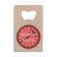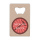 The badge-style geology logo on this bottle opener includes a rock hammer in dark red in front of a reddish sunburst design.  Overlying that is the customisable phrase "Geology Rocks!" in an light pink, art deco, industrial-style typeface.  The brown background consists of a bunch of tiny geology rock hammers!