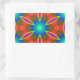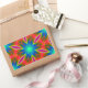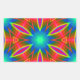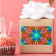An attractive geometric pattern/design in shades of red, blue, green, yellow and purple with a kind of flower like motif.