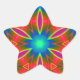 An attractive geometric pattern/design in shades of red, blue, green, yellow and purple with a kind of flower like motif.