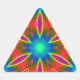 An attractive geometric pattern/design in shades of red, blue, green, yellow and purple with a kind of flower like motif.