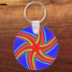 An attractive geometric pattern or design predominately in shades of red and blue, but also with yellow, cyan, purple and green.