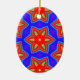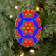 An attractive geometric pattern predominately in shades of red and blue, but also with yellow, cyan, purple and green.