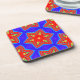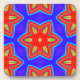 An attractive geometric pattern predominately in shades of red and blue, but also with yellow, cyan, purple and green.