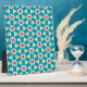 An attractive geometric pattern with asterisk like shapes, hexagons and triangles in a nicely balanced pallet of red, white, amber, brown and aqua green. The design also has a subtle paper like texture giving it a nice traditional media effect.