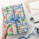 Geometric Abstract Blue Pink Yellow Green Wrapping Paper