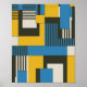 A striking geometric abstract design featuring overlapping rectangles and squares in bold yellow, vivid blue, deep black, and soft off-white. The layout combines solid blocks of colour with striped sections, creating rhythm and movement across the composition. Strong contrasts and clean lines give the artwork a modern, dynamic look, making it perfect for contemporary decor, prints, or stylish backgrounds.