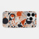 This is a Habatour Creations iphone case, adorned with an authentic geometric abstract pattern design, accented by coral red, navy, and ivory in a serene, balanced layout