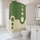 Geometric, abstract pattern, simple, modern design with circles, gold lines, beige, olive green