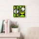 Geometric Abstract Retro Art Chartreuse Green Square Wall Clock
