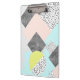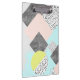 This abstract design features a collage of geometric shapes, pastel colours, polka dots and concrete.