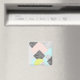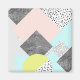 This abstract design features a collage of geometric shapes, pastel colours, polka dots and concrete.