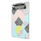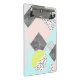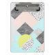 This abstract design features a collage of geometric shapes, pastel colours, polka dots and concrete.