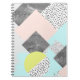 This abstract design features a collage of geometric shapes, pastel colours, polka dots and concrete.