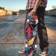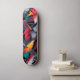 This skateboard deck showcases a striking geometric abstract design with sharp angles and vibrant colours like red, black, and teal. Ideal for skaters drawn to bold, modern art, this unisex deck combines urban energy with contemporary style for a distinctive look.