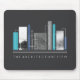 Stylish mousepad for someone in the architecture business with geometric shapes filled with textures and colours in grey, blue, white, and turquoise.
