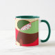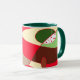 Coffee mug with geometric art, brown, beige, green, red colours