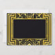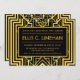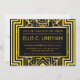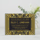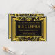 These bachelorette party invitations feature an intricate geometric frame, geometric patterns, a black and gold colour palette, and other stylistic details all inspired by Art Deco and the roaring twenties. You can customise the sample text fields to your liking.