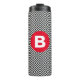 Geometric Black and White Pattern Red Monogram Thermal Tumbler