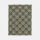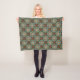 Geometric Boho fleece blanket, The colours are green, blue and tan. Curl up on the couch with a book and this pretty blanket.