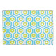 Modern geometric pattern of hexagons and crosses in blue, green, white.