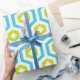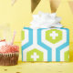 Geometric Blue Green Hexagon & Cross Pattern Wrapping Paper