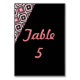 Geometric Chic Pink and Black table card is a unique design featuring a black background and a pink and black geometric pattern in the upper left hand corner. Purchase your table cards today!