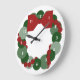 Get ready for the holidays with this festive geometric Christmas wreath. The wreath in this original digital design is made of green dots in three different shades and sizes. A strand of smaller red dots reminiscent of cranberries winds around the circular pattern. The image is topped with a red bow.