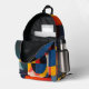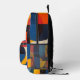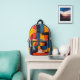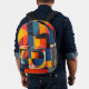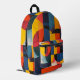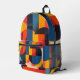 Brightly coloured circles and rectangles in blue, yellow, orange and more form a lovely abstract design on this backpack.