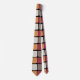 Geometric Colour Block Pattern neck tie designed by Nisha Prabhu. Mustard yellow, magenta red, grey and white colour blocks on black colour background.