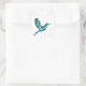 A bird in flight composed of geometric shapes in shades of blue, cyan, turquoise and green.